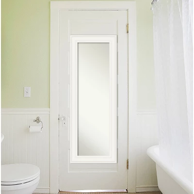 This full-length Non-Beveled Mirror framed in the Ridge White frame, complements your decor without the need for unsightly over-the-door brackets. Individually made using traditional custom framing techniques, it has the quality you would expect from your local frame shop. It holds its value with premium finishing that can be appreciated up close. Our On The Door Mirror has two hooks to hang directly on your door or wall without additional anchors or brackets. Hang it on the back of a closet, bedroom or bathroom door, or wall as a standard full-length mirror. Because of our attention to detail and focus on artistry, architects, interior designers, and homeowners alike choose this mirror to create beautiful living spaces.