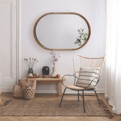 This mirror is perfect for unleashing your inner bohemian and redecorating your space with a transitional, casual look. The Hutton was designed with robust premium poplar wood, providing high-quality durability, a lovely texture, and a bold style. The capsule shape is perfect for introducing soft geometry to your space and highlighting a sense of relaxing boho charm. Its overall dimensions are 24 inches by 2 inches by 36 inches, creating a commanding statement piece that functions well in various spaces. Use the Hutton mirror to bring vibrancy to your space, using the wide surface area to increase the spread of light and make your room appear brighter. It looks great in vertical and horizontal orientations, pairing well with your mantle, console table, sofa, or bed. If you’re looking to start renovating your bathroom with a relaxing vibe, the Hutton works well as a bathroom mirror in a single or double vanity. Hang this mirror in a matter of minutes with the metal D-ring hangers that are attached to the MDF back.