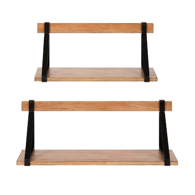 Decorate your home with a collection of shelves that utilize rustic materials in a modern design. The Willmann shelves from Kate and Laurel feature a solid rubberwood base nestled within two triangular brackets to create the ultimate blend of modern minimalism and farmhouse charm. Each shelf in this set has its own individual size: the larger Willmann shelf is 23.75 inches wide by 6.75 inches deep by 8.75 inches tall, while the smaller version of the Willmann shelf is 19 inches wide by 6 inches deep by 8 inches tall. These farmhouse shelves also have a 10 lbs. weight capacity, providing you with plenty of opportunities to showcase your favorite books, sculptures, plants, or photos. Since two sizes come in this set, you can display them side-by-side, vertical, or spread throughout your home to create a cohesive theme on your walls. Hanging the Willmann shelves takes only a matter of seconds thanks to the convenient metal keyhole hangers attached to the back of the two triangular metal brackets.