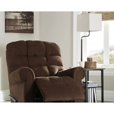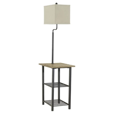 This metal tray lamp seamlessly integrates tabletop and dual rack space with an overhead lamp, putting multi-functional furnishings in a new light. What an especially bright idea when youāre tight on space. Black Finished Metal and Antique Brown Wood Tray Lamp. Rectangular Hardback Shade. 3-Way Switch. Type A Bulb – 100 Watts Max or 23 Watts Max CFL. Signature Design by Ashley is a registered trademark of Ashley Furniture Industries, Inc.