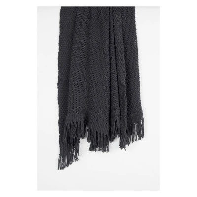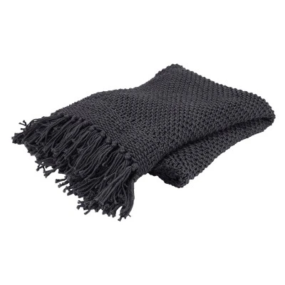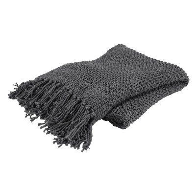 This is a gorgeous solid over sized dark gray 50”x 60” throw. This is the perfect solution for year round comfort with style. This throw is a solid woven luxuriously soft throw perfect for lounging around your home. There is no better way to stay warm than with this Rizzy Home collection throw. Oeko-Tex Certified