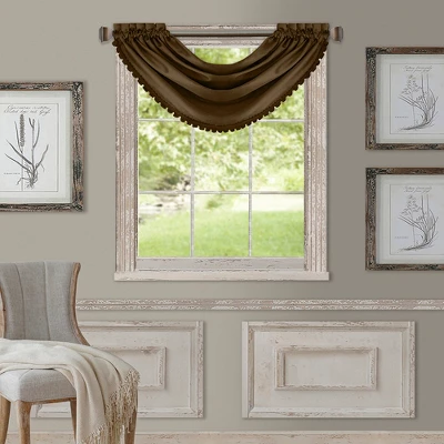 The All Seasons valance offers an elegant silk look and room darkening benefits. A versatile color palette makes this window valance perfect for any décor. Waterfall valance features scalloped decorative trim and a beautiful drape. Matching curtains sold separately. 100% polyester. Sold as a single valance, multiple valances needed to create layered look. Easy care, machine washable.