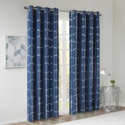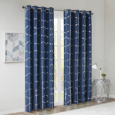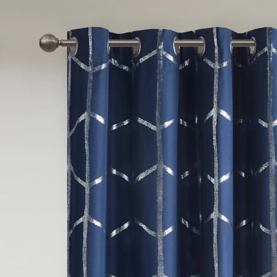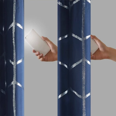 Freshen up your space with the enchanting style of Arielle Blackout Metallic Printed Panel. The stunning panel flaunts a geometric, metallic print against a light color ground for a fun and eye-catching look! Finished with a heavy 3 pass foamback liner, this panel is 100% total blackout providing energy efficiency and added privacy. Grommet top makes this panel easy to hang, open, and close through the day. Machine washable for easy care; complete the collection with coordinating bedding and shower curtain sold separately.