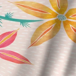 Let the Nicole ruffled valance brighten any room in your home with a burst of color and a joyful floral design. Vibrant watercolor leaves and blooms bring spring to life in your breakfast nook, kitchen bar or dining room, creating an inviting scene for the season of renewal, or for any day of the year. This ruffled unlined valance is light filtering with a 2-inch rod pocket and a 1-inch decorative header. Crafted of cotton, machine wash and tumble dry low for easy care. Love this pattern? Nicole is also available in our bedding and tabletop collections. Each valance is 72″ wide, hanging rod not included.