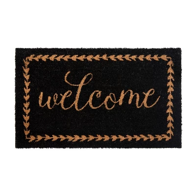 Reduce the amount of dirt and debris that makes its way into your home while adding great style and visual appeal with this indoor/outdoor welcome coir doormat. Natural coir fibers are among the strongest fibers found in nature so they withstand the rigors of high traffic areas and easily capture dirt and moisture to prevent tracking. Safe for kids and pets, the addition of an anti-slip rubber backing keeps the mat in place to help prevent slips or falls. Place this coir mat in entryways or mudrooms or use it as outdoor porch or patio decor or layer over a rug as an added design element. Simply shake, sweep, or vacuum to clean your new mat and while it is weather resistant, we recommend avoiding prolonged exposure to excess water.