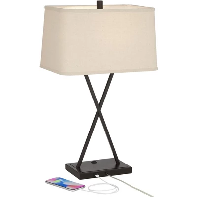 - Modern USB table lamps from the Franklin Iron Works brand. USB ports in each base for charging smart phones and other devices.