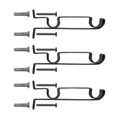 - Includes: two telescoping curtain rods with finials, two double rod brackets, one center support, screws, drywall anchors, and installation instructions