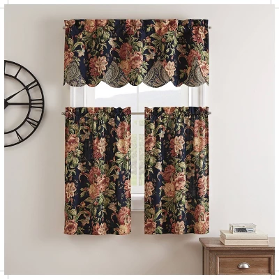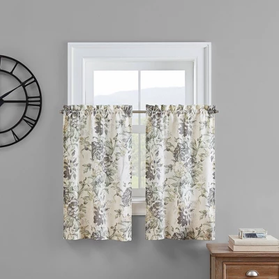 Drape your home in elegant window treatments by Waverly. Exquisite and versatile, the Kensington Bloom tier pair features a beautiful farmhouse floral pattern on an elegant ground. Perfect for kitchen, bathroom, laundry room, or any small window in the home. Pair with the Kensington Bloom valance to complete the look. Valance sold separately. Sold as a tier pair, each tier measures 26 inches wide by 36 inches long. 1.5 inch rod pocket accommodates 1 inch rod. 100% Cotton. Machine wash cold, gentle cycle. Tumble dry low.