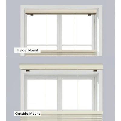 - | MOUNTING OPTIONS | Our cordless roller shades are easy to install and use. Compatible with inside or outside the window frame mounting. The mounting brackets can be screwed into the wall or ceiling. Features hidden mounting brackets. For an outside mount, we recommend adding 4 inches to the width when ordering.