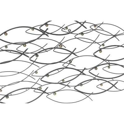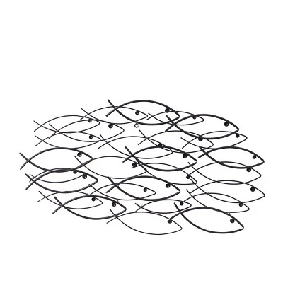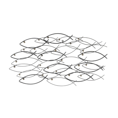 - Features an ambient-style image of "School of Fish" wall art in textured dark gray finish