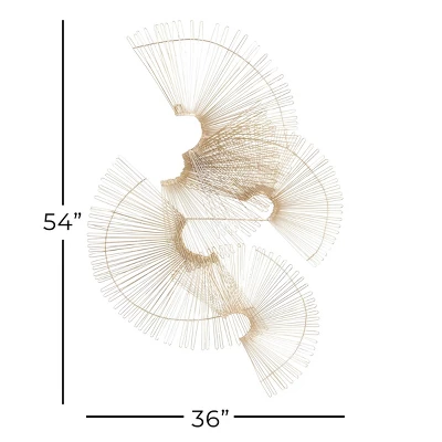 - •This abstract wall art features fan-inspired metal sculptures floating together in different directions
