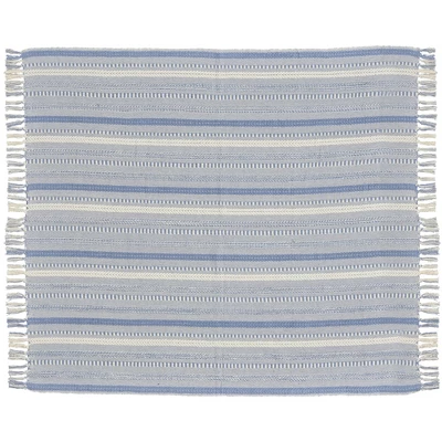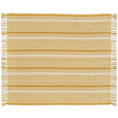 Add warmth to your couch, chair, or other seating area without sacrificing style with this throw blanket from Mina Victory Home Accents. Brimming with casual charm, it features a multi-striped pattern in neutral beige, with tasseled ends that add a touch of texture. Made from cotton in a 50” x 60” size. Coordinates beautifully with our matching 2-pack of throw pillow covers.