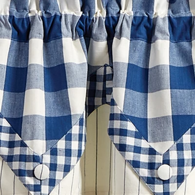 Create a warm and bold statement for your window with the buffalo check China-blue and cream valance. You will quickly fall in love with the classic appeal this window treatment adds to your home decor with its timeless design. The natural ruffling of the fabric at the top paired with its simple check will create a pretty, country look without having to redecorate an entire room.
