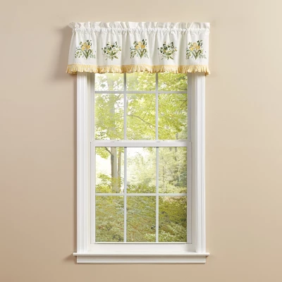 Embrace the bright hues and botanical vibes of the spring season and Easter holiday with a spring window treatment. This floral valance has a variety of gorgeous yellow tulips with accent blue forget me not flowers that will bring in a sensation of energy and beauty to your spring decor. Features a lovely gingham ruffle element for a trendy flair within the desired living room, bathroom or kitchen area. Made from a 100% quality cotton material for a window treatment that can be reused year after year within your seasonal home decor.
