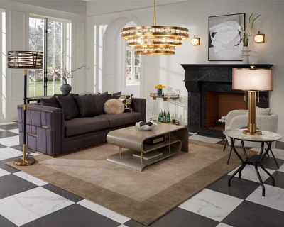 - An elegant look for modern luxe or Art Deco decorating. Brass finish lamp base. Metal construction.