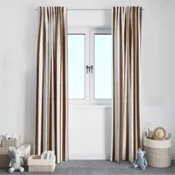 Bacati – Wide Stripes Chocolate Cotton Printed Single Window Curtain Panel