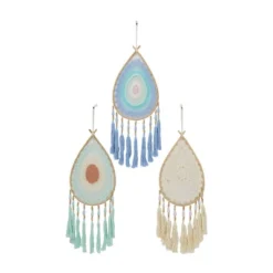 Set Of 3 Cotton Macrame Handmade Woven Dreamcatcher Wall Decors With Fringe Tassels – Olivia & May