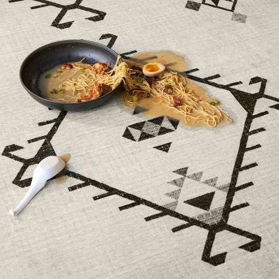 - SOUTHWESTERN ELEGANCE: RUGGABLE Damali Black & White Washable Area Rug blends modern technology with timeless style. Cream, grey, and pearl hues frame symmetrical black diamonds for a captivating boho look.