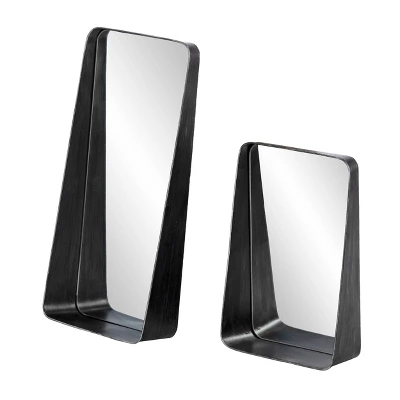 Add dimension to your wall space with the Aiden Lane Dagney Decorative Mirrors with Shelves. Two coordinating mirrors brighten your modern design, while display ledges show off your favorite decorative items. Hang this pair of mirrors in your entryway for the ideal blend of function and style, or place in your powder room to put the finishing touch on your vanity decor. Transform the look and feel of your space when you bring home this wall mirror set.